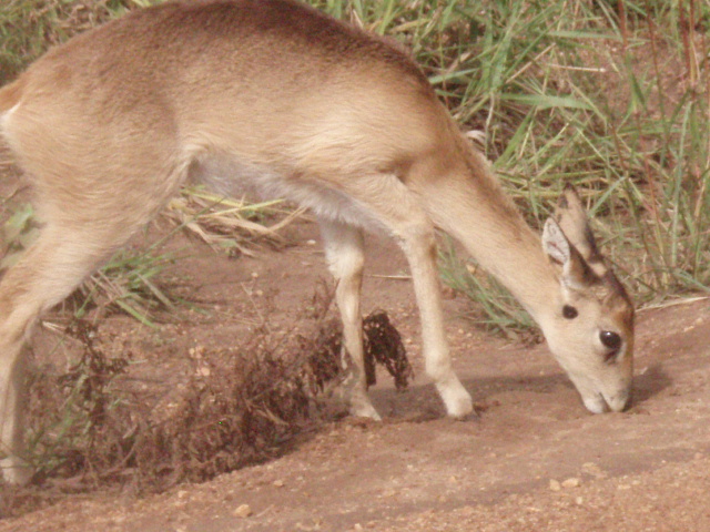 I enjoyed a buffet breakfast at Chobe again overlooking the Nile River with hippos and water buffalo. We left at 7 a.m. for our 5 hour game drive through Murchison National Park. We went through several different ecosystems along the way, from thick acacia forest, to savannah with predominantly fig trees, then drier savannah with Borassa palm trees, then to rainforest by the Albert Nile. I saw lots of Jackson's hartebeests, Uganda koes, water buffalos, baboons, warthogs, and giraffes. There were lesser amounts of bushbucks, vervet monkeys, and elephants. I only saw a couple of oribis, a small antelope that was licking up salt from the road. And I only saw one lion, a female who was hiding in the shade of a bush flicking her ears and moving her head around.